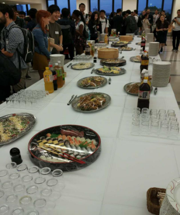 傍晚,来自世界各地的留学生们在上智大学汇聚一堂,享用上智大学给各位同学准备的丰富的交流晚宴。
